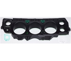 Reproduction housing for SS gauges or converting from standard sweep to SS gauges. Complete with turn signal high beam & headlight switch lenses. 1970 came with a green lens and 71-72 came with a white lens.  Bolts up to existing dash as original.